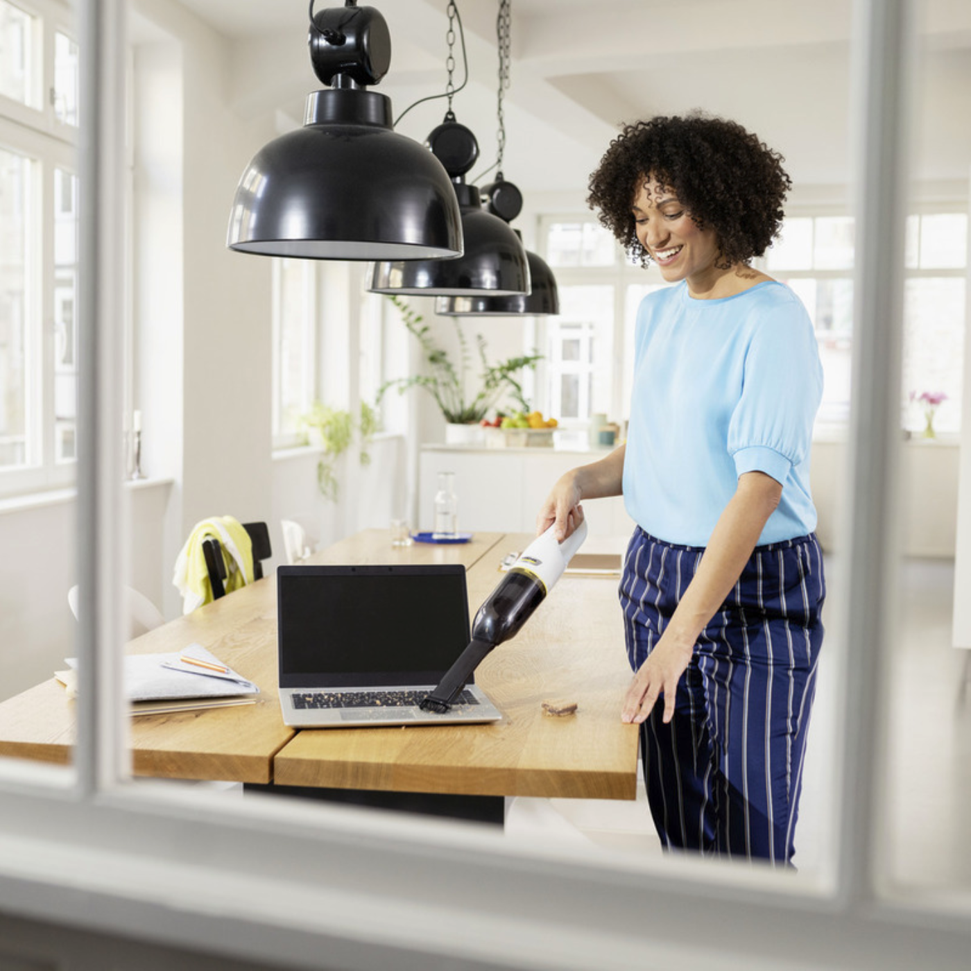 Impressive performance: the battery-powered CVH 2 handheld vacuum cleaner is a lightweight, effortless yet powerful device to remove occasional dirt, such as crumbs, dust and hair from furniture, floors and cars. Its compact, lightweight design means that this vacuum cleaner is also easy to operate and store away. Plus, the washable two-step filter system, comprising a fine steel mesh for coarse dirt and hair and the downstream HEPA filter (EN 1822:1998), ensures exhaust air is extra clean.